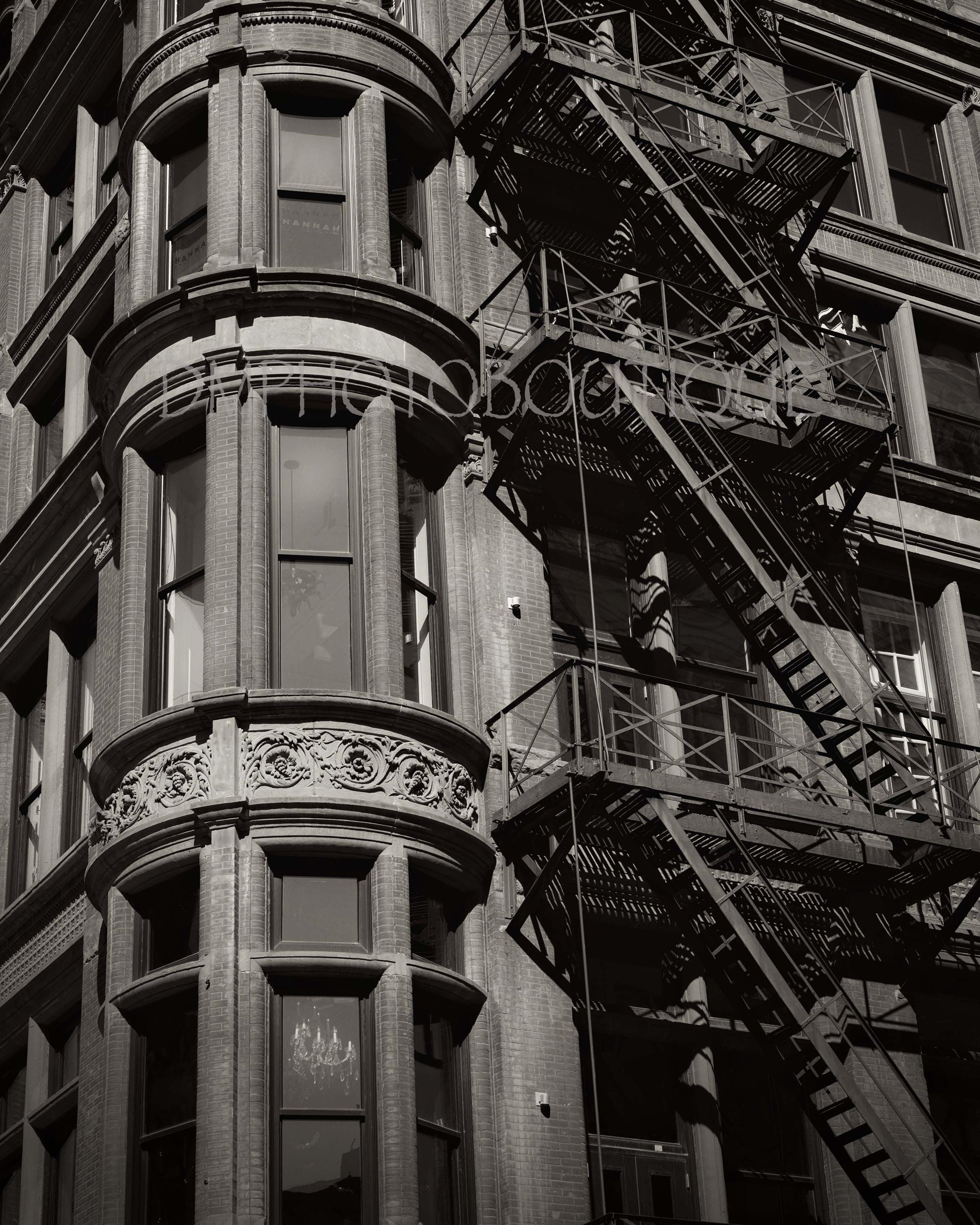 Bring timeless style to your decor with this architecturally cool fire escape fine art print in classic black and white.