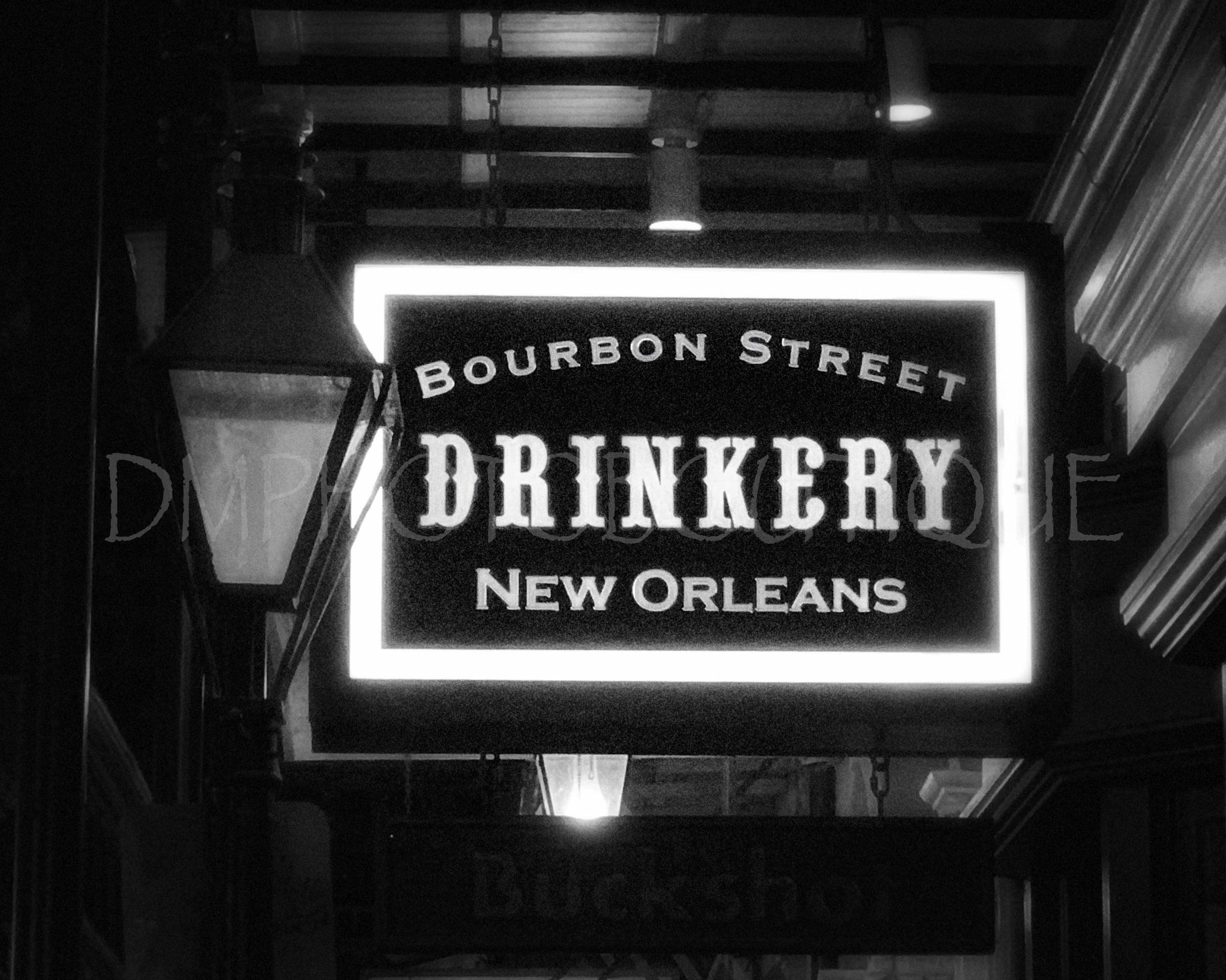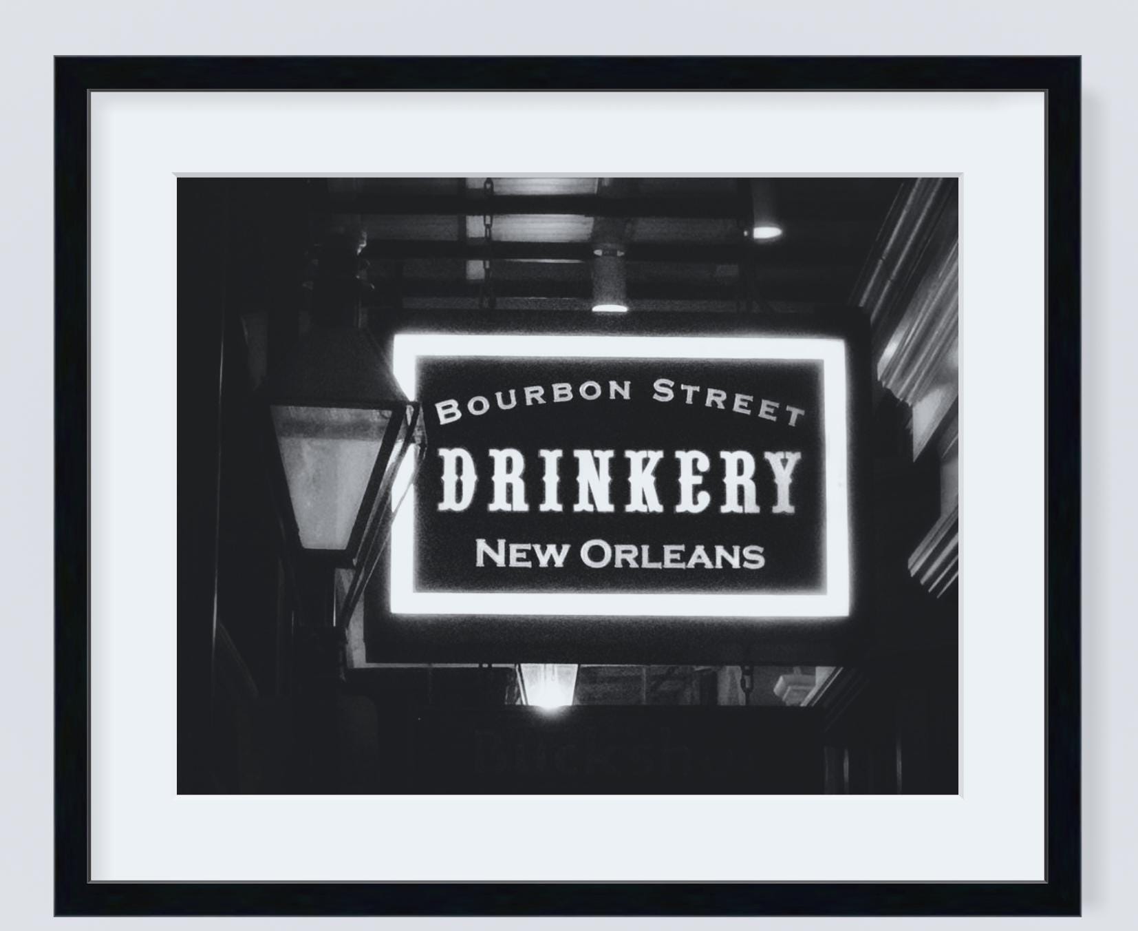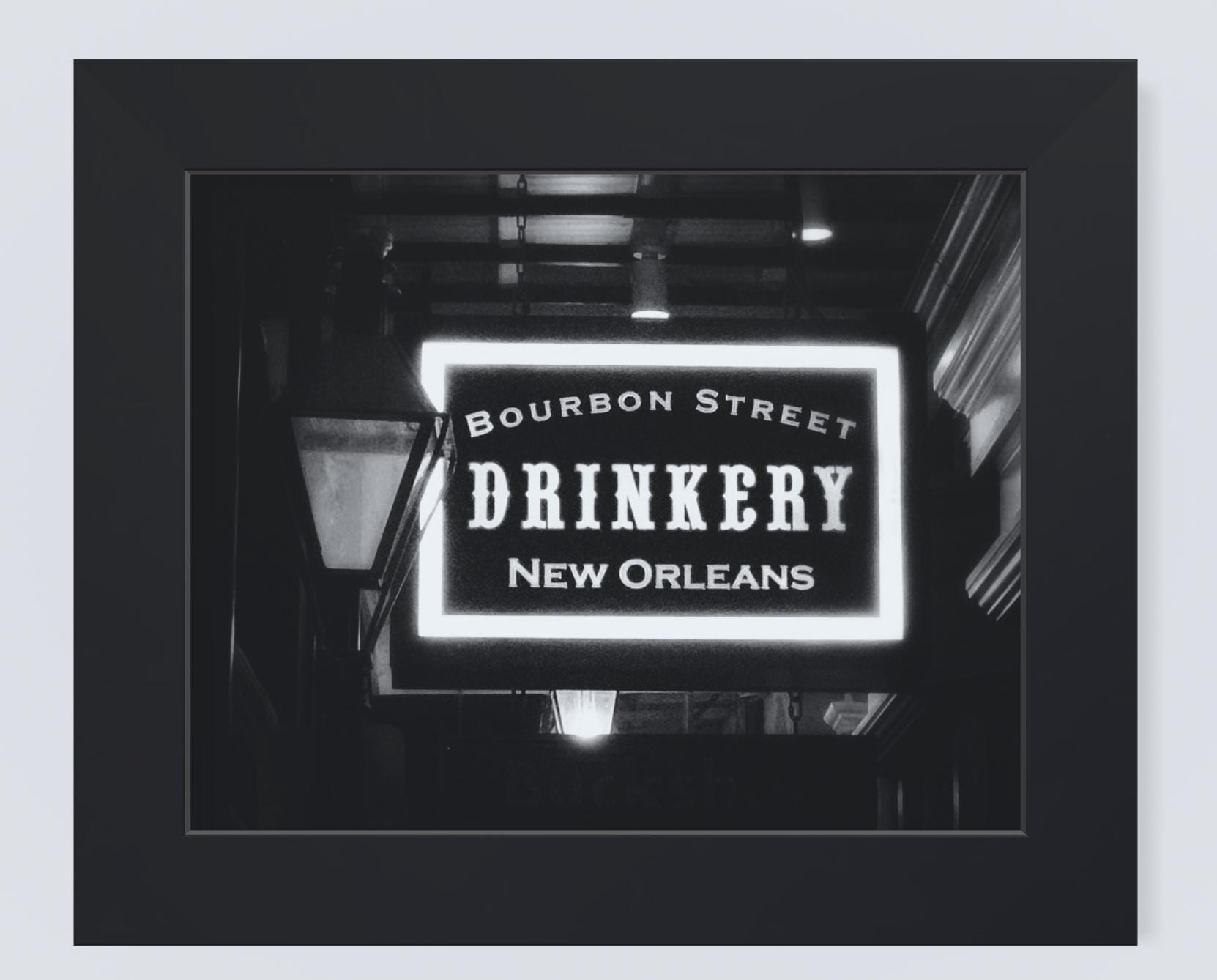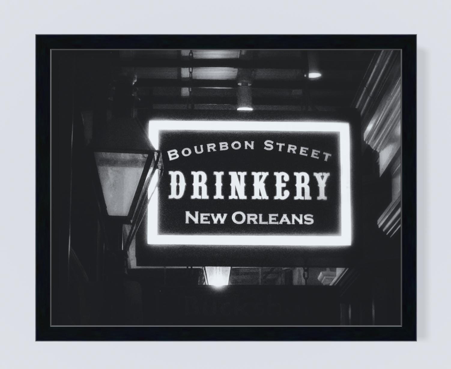 This image of a bar sign found in the heart of Bourbon Street will definitely add an element of cool to your home bar. Comes in classic black and white with a grungy/grainy old film look.