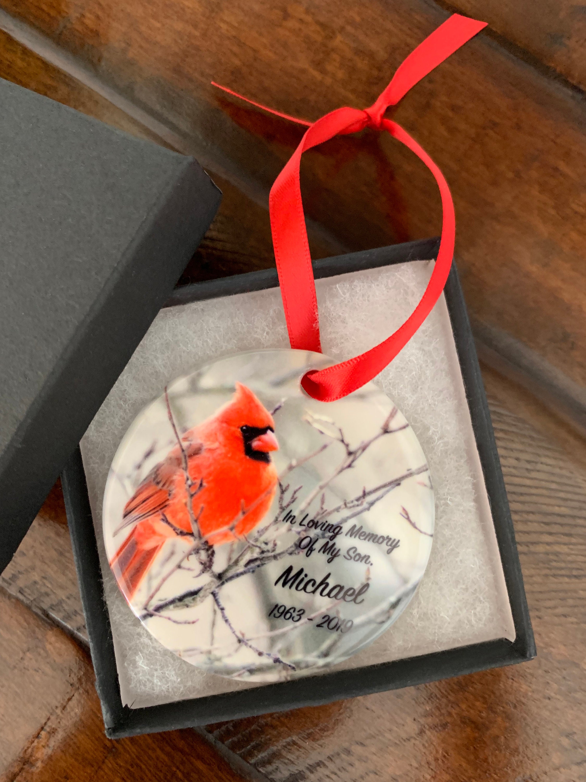 Hold the memories of your loved ones close with this beautifully and elegant, personalized memorial Christmas ornament.